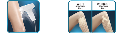 Rolka wskazująca o ile przesunąć urządzenie ma do następnego naświetlenia, pomaga nie przegapić żadnych obszarów, jak również uniknąć podwójnego naświetlania tych samych obszarów, zmniejszając ryzyko poparzenia.